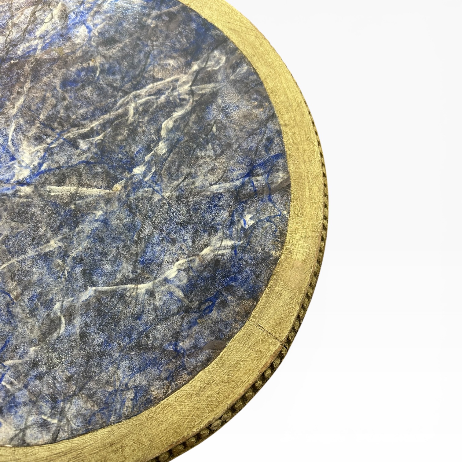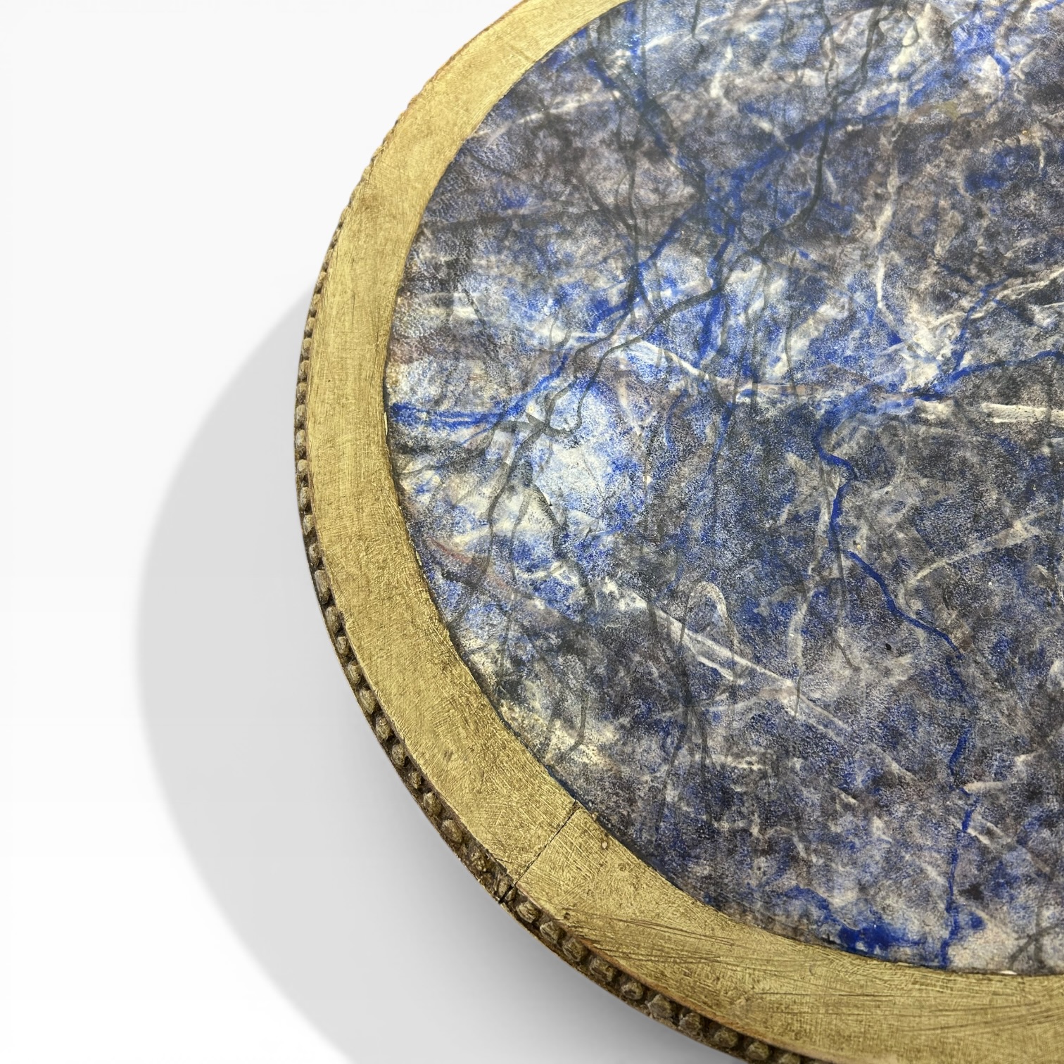 Fantástico velador con sobre policromado en lapislázuli